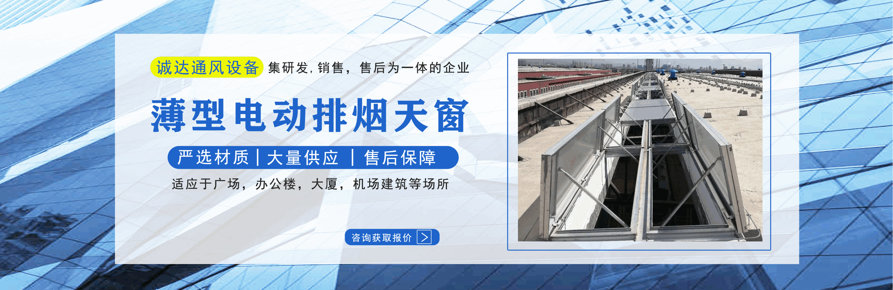 山東誠達通風設備有限公司主營排煙天窗,電動排煙天窗,消防天窗,一字型消防電動排煙天窗,薄型電動排煙天窗等產(chǎn)品,質(zhì)量可靠,歡迎前來咨詢訂購!  公司憑借雄厚的實力,豐富齊全的規(guī)格品種,完善的質(zhì)量保證,合理的價格,優(yōu)質(zhì)的服務,不斷地受到新老用戶及業(yè)內(nèi)人士的肯定和信任,我們本著及用戶之所及,想用戶之所想的服務宗旨不斷地拼搏,進取!  公司真誠的歡迎社會各界朋友蒞臨本公司參觀考察,同時也非常感謝所有新老客戶的信賴和支持。...